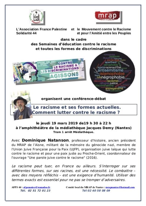 Avec la participation de Pierre Stambul porte parole de l’UJFP (Union Juive Française pour la Paix).
