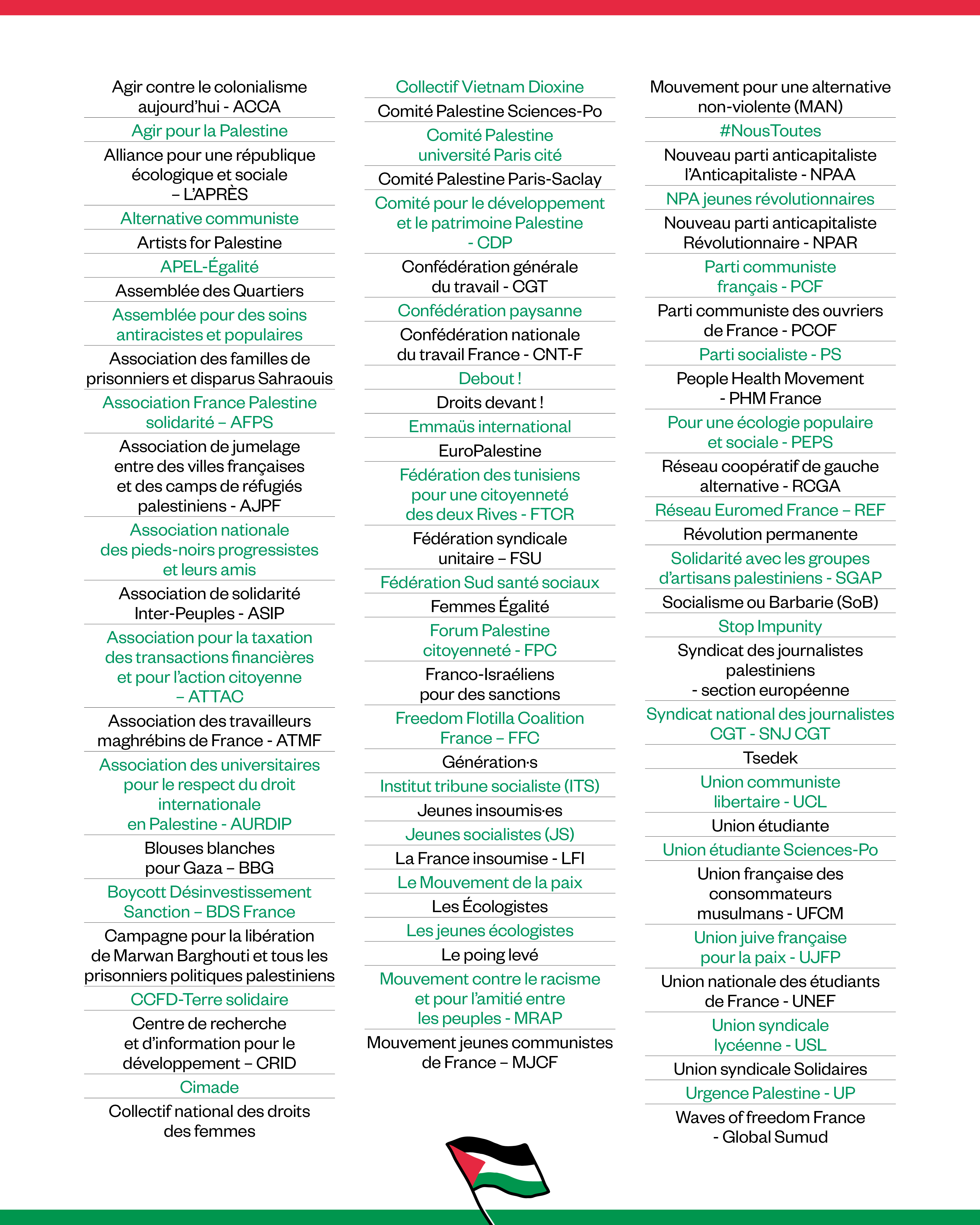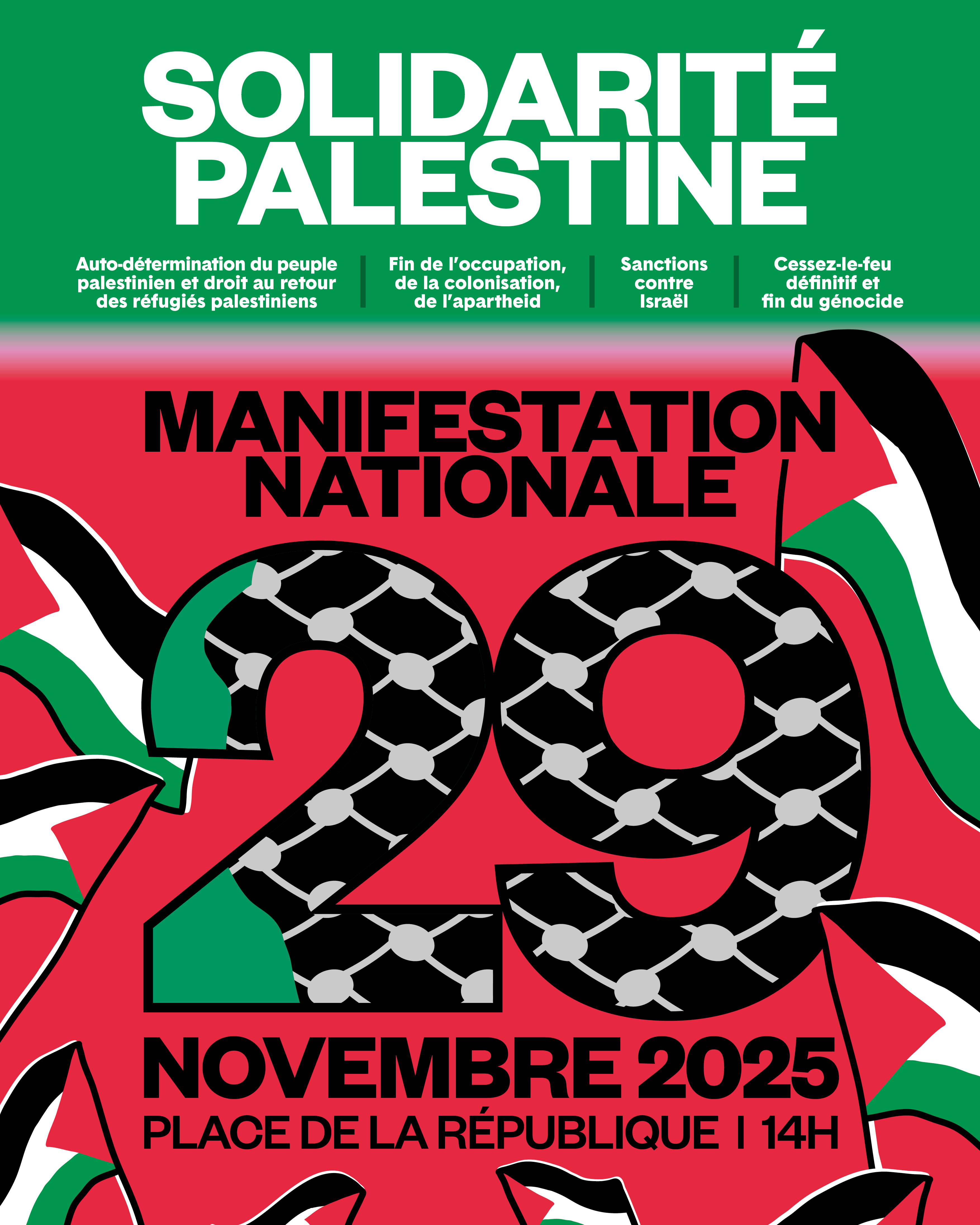 Nous manifesterons le 29 novembre à Paris pour la défense des droits du peuple palestinien sur la base du droit international :